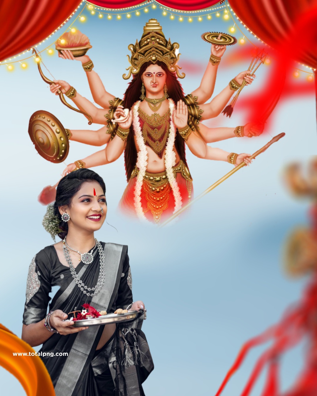 Boost your artistic projects with the adaptable New Navratri Durga Puja Photo Background Girl Ke Sath image and witness your creative ideas come to life in remarkable ways.