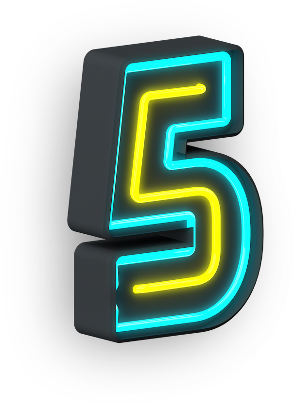 Boost your artistic projects with the adaptable Five Neon transparent background png clipart image and witness your creative ideas come to life in remarkable ways.