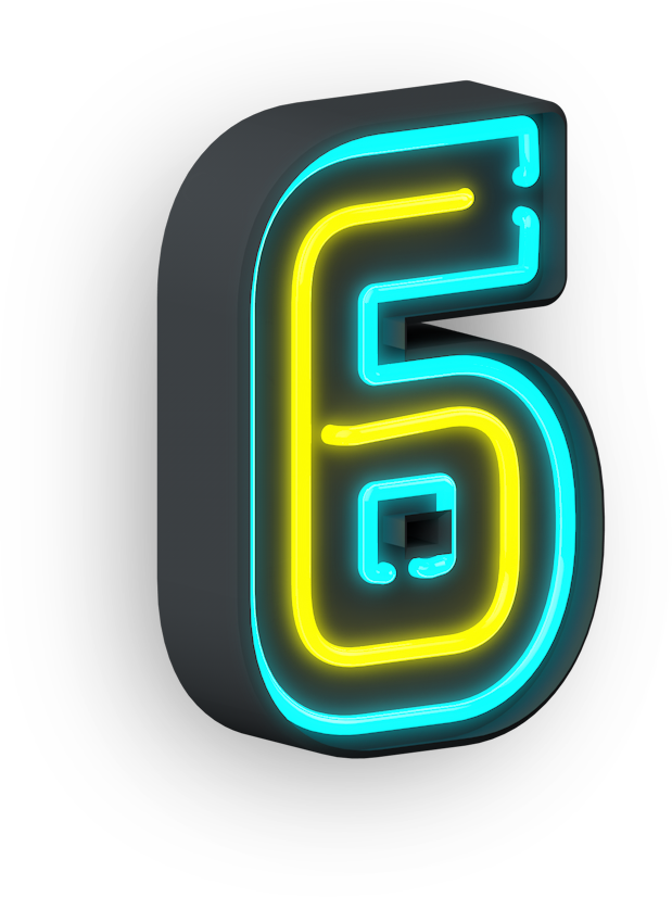 Boost your artistic projects with the adaptable Six Neon transparent background png clipart image and witness your creative ideas come to life in remarkable ways.