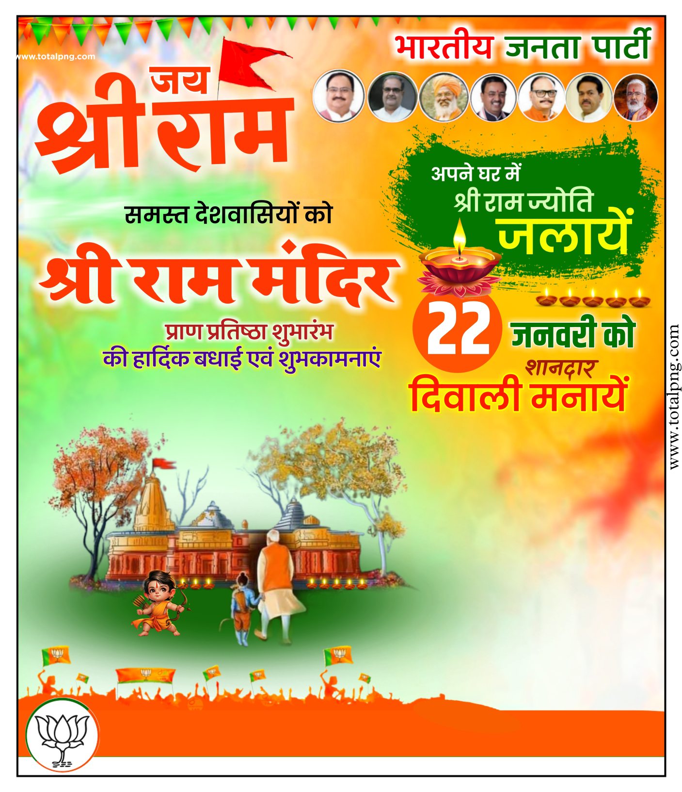 Boost your artistic projects with the adaptable Ayodhya Ram Mandir Pran Pratishtha banner bjp Background Hd image and witness your creative ideas come to life in remarkable ways.