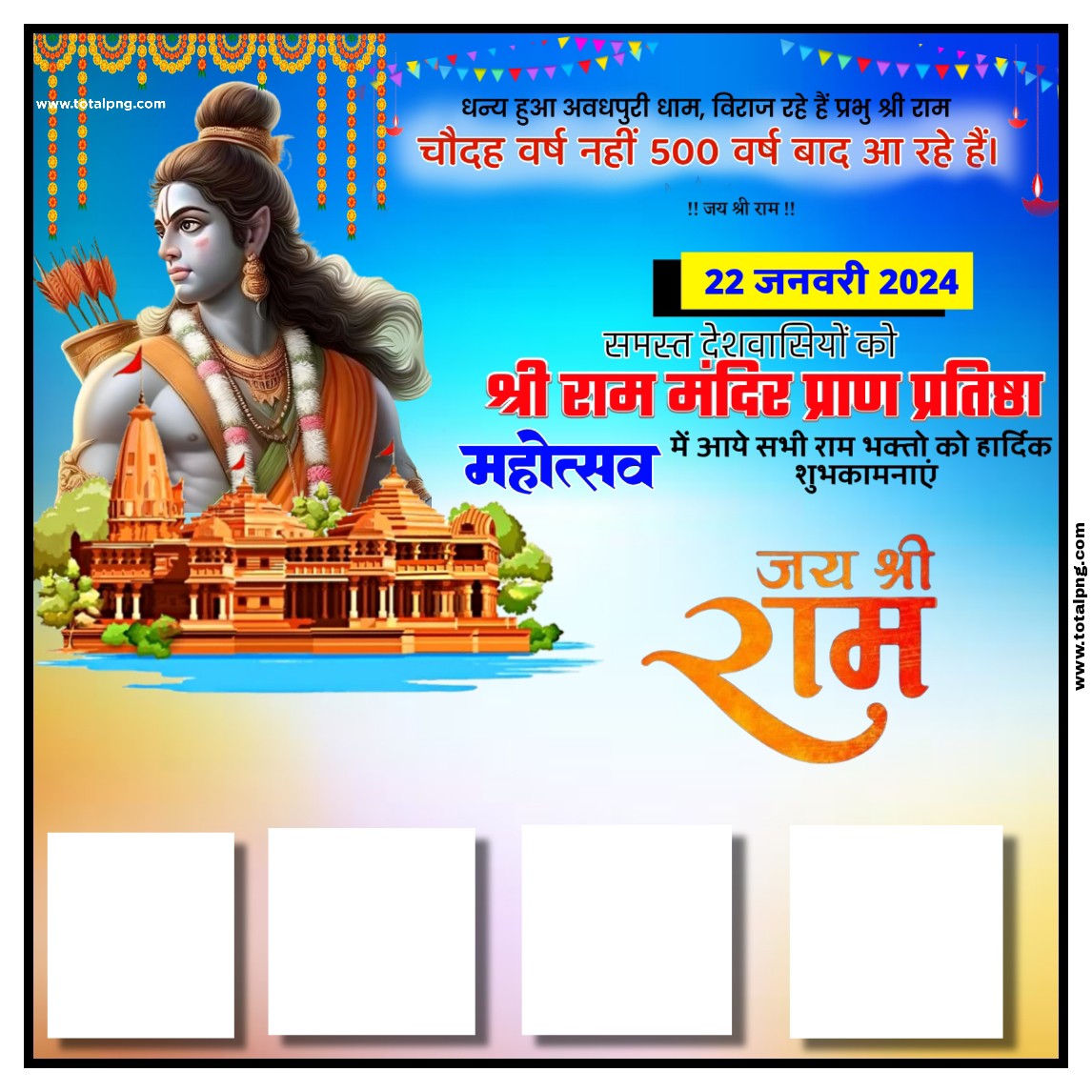 Boost your artistic projects with the adaptable Ram Mandir Pran Pratishtha Group Banner background Free image and witness your creative ideas come to life in remarkable ways.