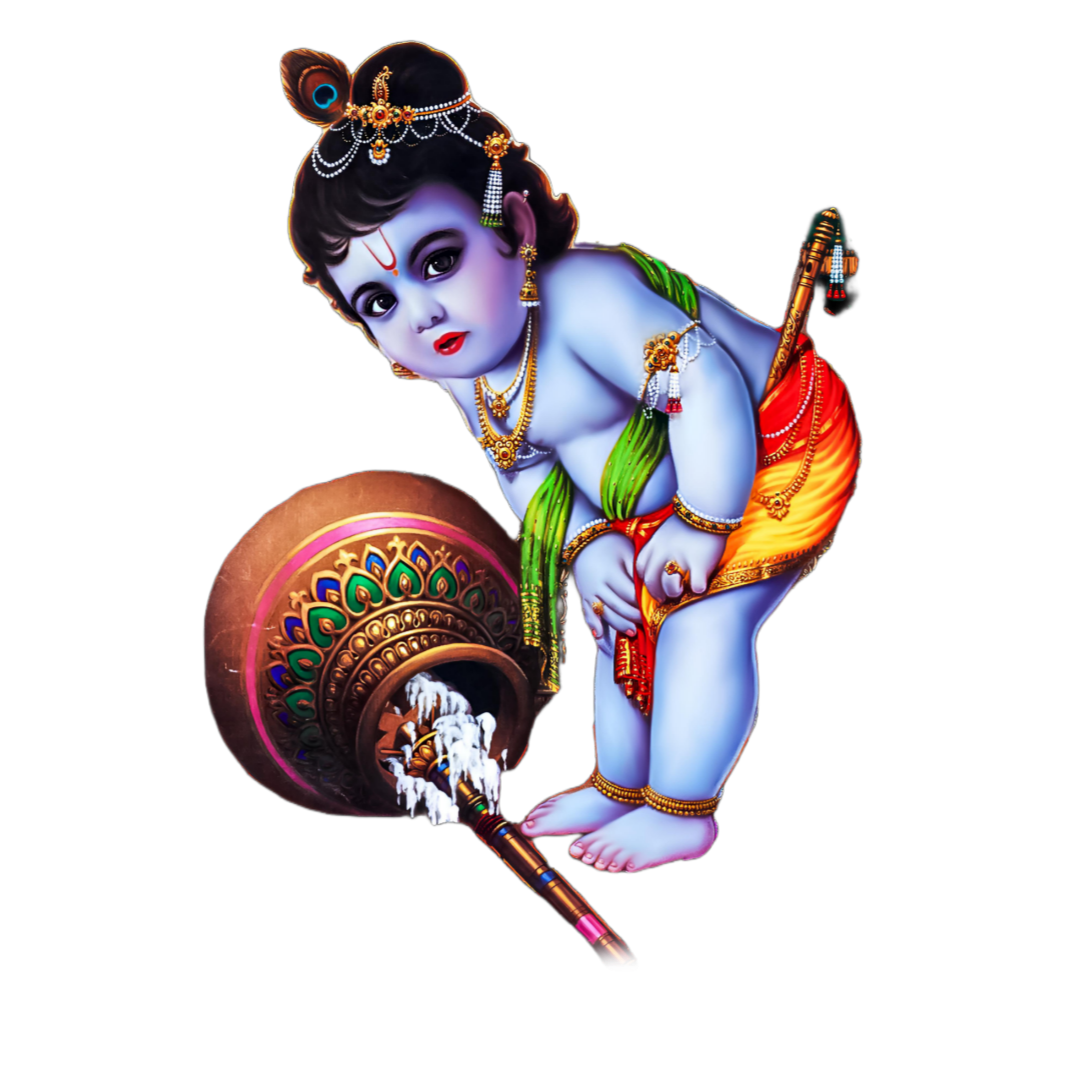 Boost your artistic projects with the adaptable Lord Krishna Standing With Makhan Little Krishna PNG image and witness your creative ideas come to life in remarkable ways.
